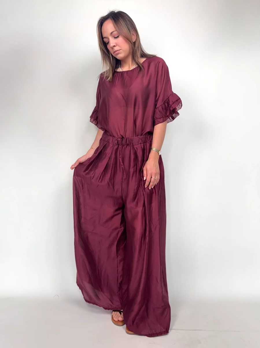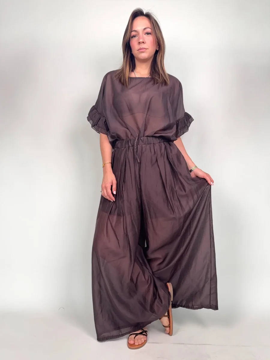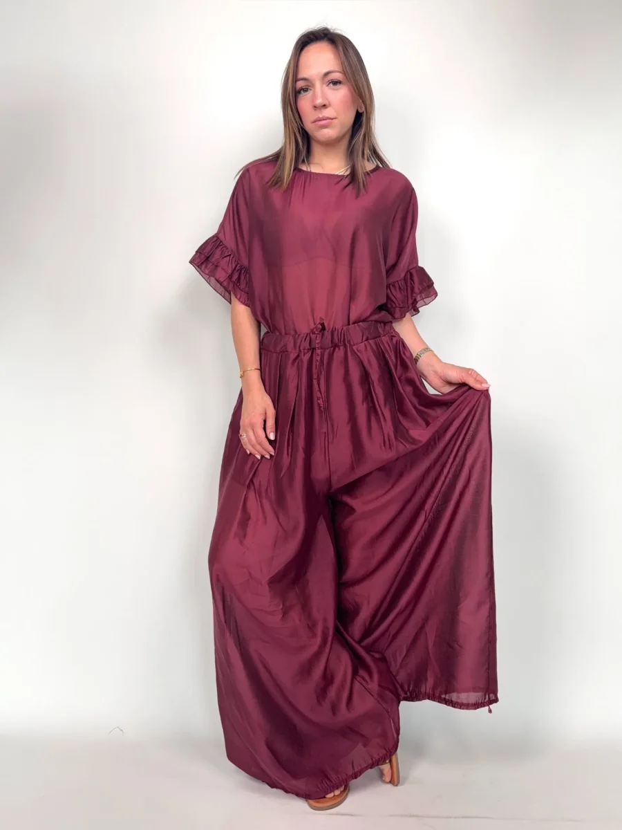 Pantaloni leggere in Tencel AFRICA Modello ampio, elastico in vita Foderata la parte del pantaloncino Taglia unica, veste fino una 46/48 Composizione 85% tencel 15% poliestere