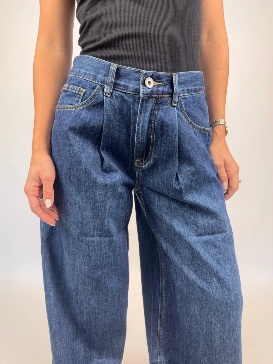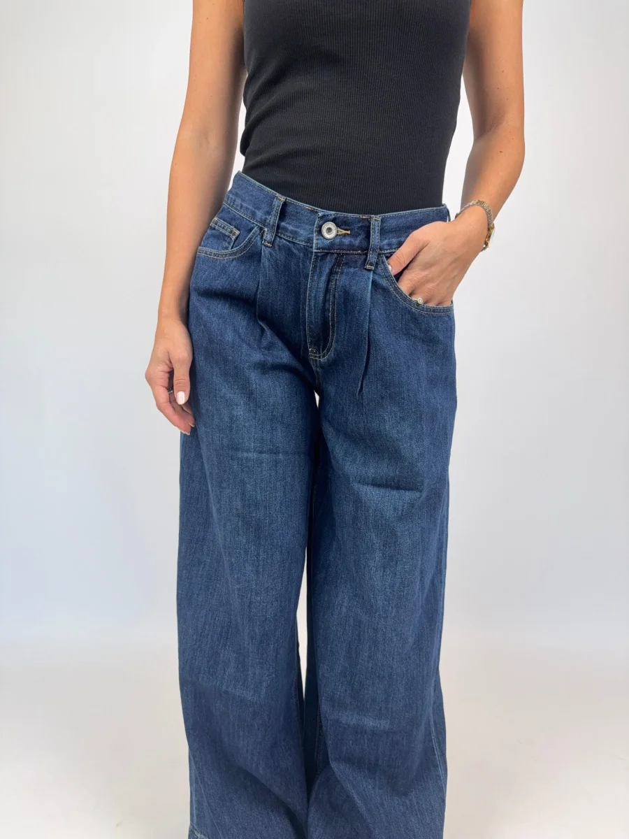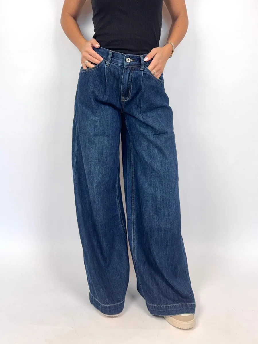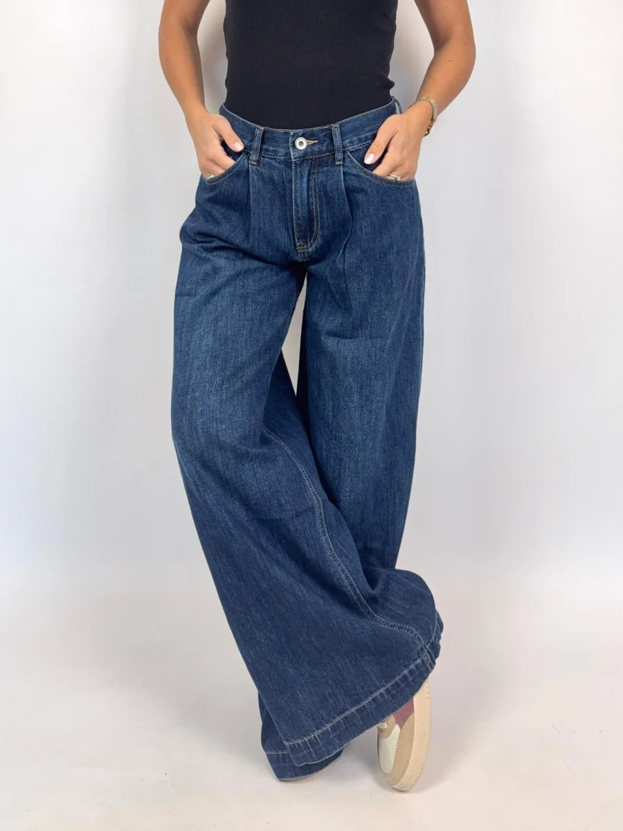 Pantalone Jeans Palazzo MOLLY Pantalone palazzo con pences Taglie dalle XS alla XL, vestibilità regolare Made In Italy