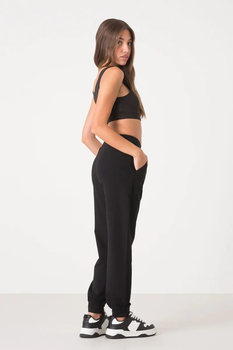 Goditi il massimo comfort senza rinunciare allo stile con questi pantaloni con polsino in morbida felpa modal elasticizzata. Ideali per ogni momento della giornata, la loro vestibilitร  รจ garantita dalla fascia elastica regolabile con coulisse. Il taglio morbido li rende perfetti per l’attivitร  fisica e il relax. Le tasche laterali aggiungono funzionalitร  e un tocco casual.