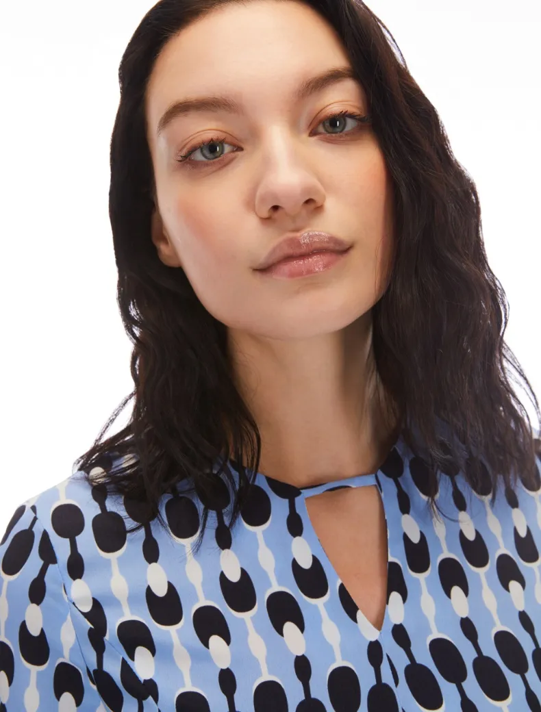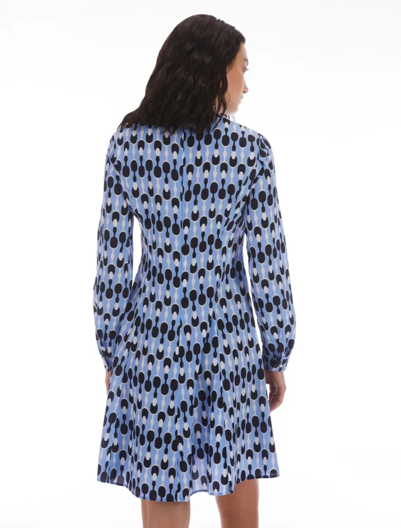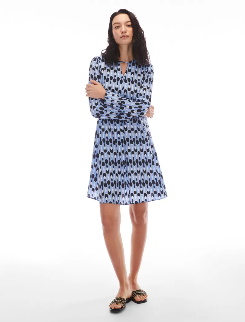 • Abito in crêpe de Chine a fantasia sailor chain. Ha un taglio slim al busto e svasato al fondo, mosso da una piega sul davanti. Girocollo con dettaglio cut-out, polsini a camicia e zip invisibile. Sfoderato.