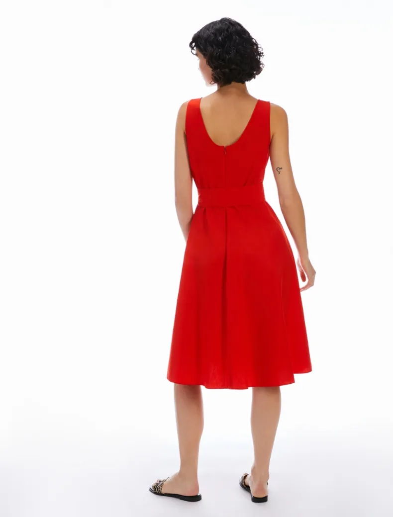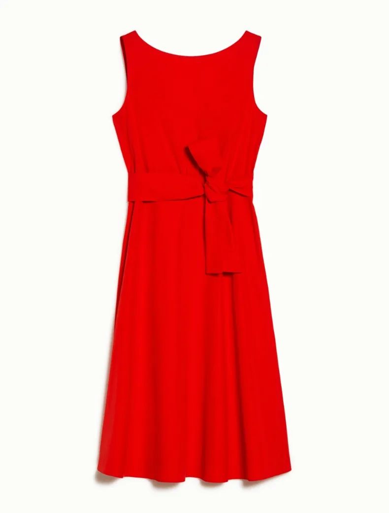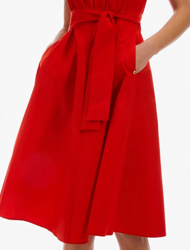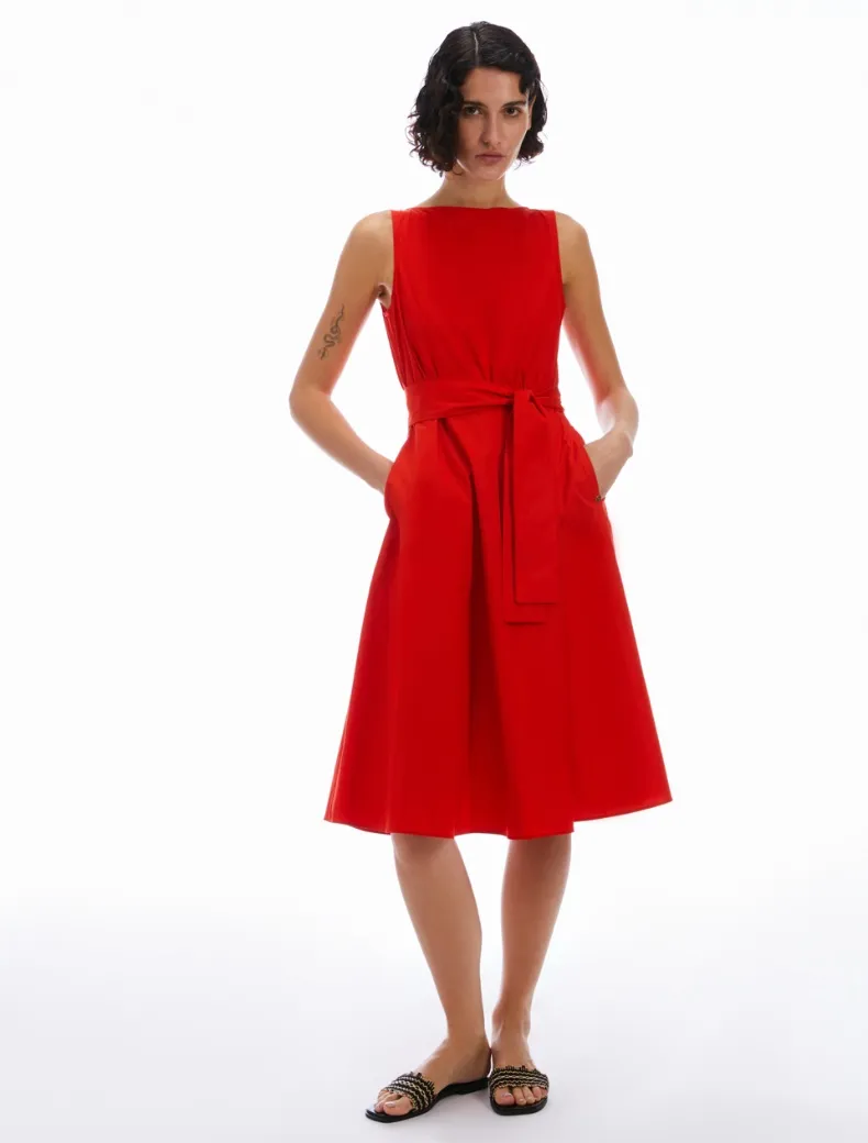 - Abito midi in popeline di cotone. Top di taglio slim con scollo a barchetta sul davanti e a U sul retro, vita delineata con cintura abbinata, gonna svasata. Tasche inserite ai fianchi e zip invisibile, sfoderato. Bon chic, in tinta unita o a fiori pop.
