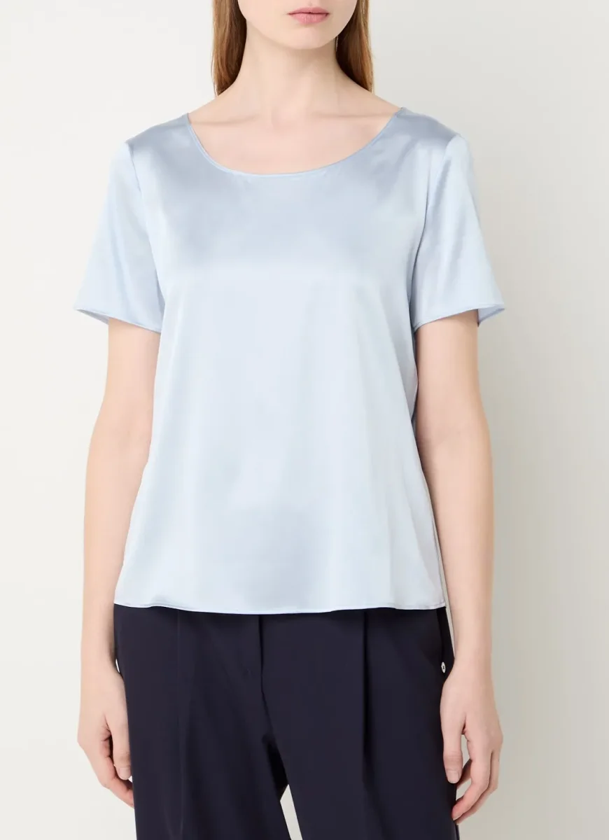 - Chic passe-partout, la blusa taglio T-shirt in raso di seta è perfetta per infiniti abbinamenti, dal completo elegante ai pantaloni informali.Raso di seta stretch