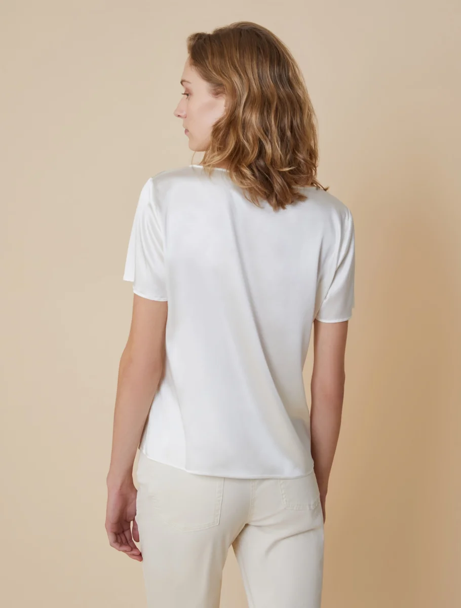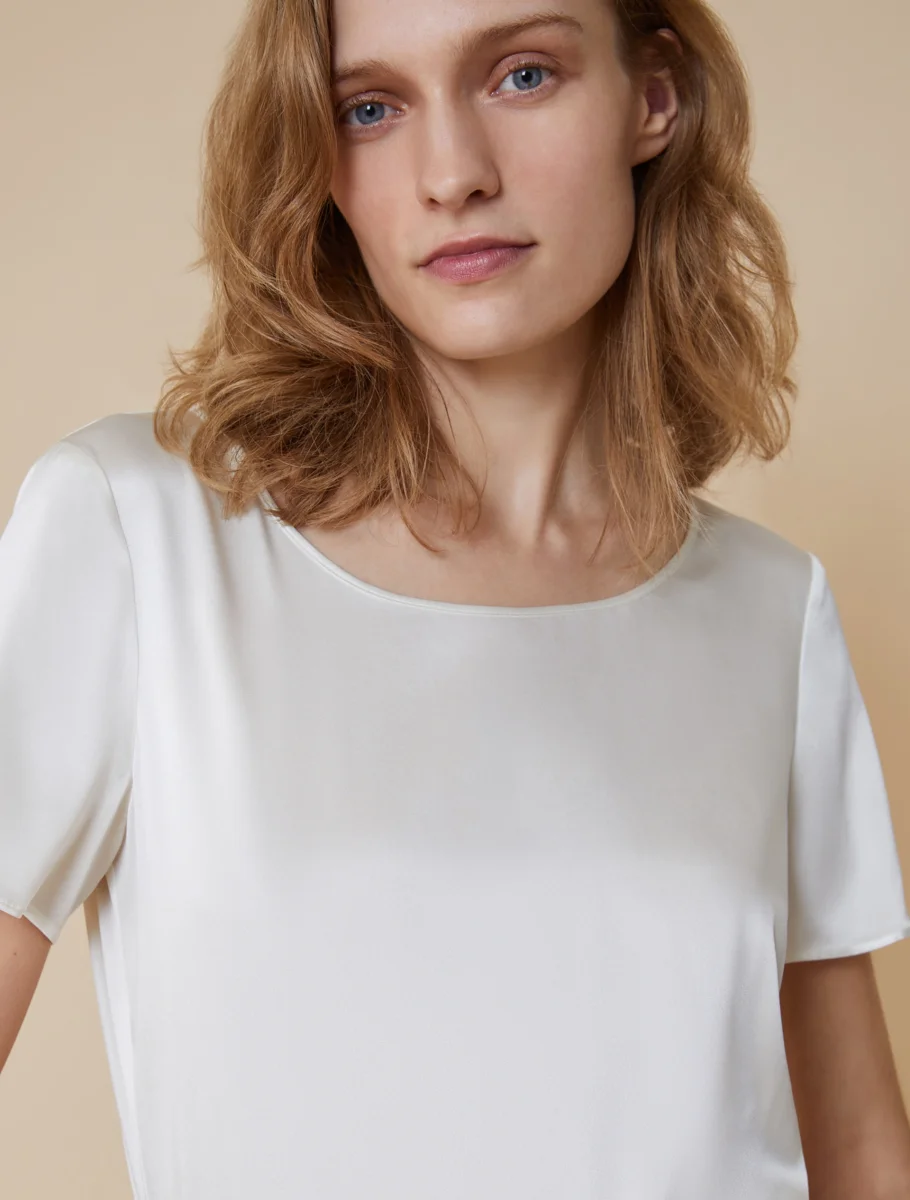 - Chic passe-partout, la blusa taglio T-shirt in raso di seta è perfetta per infiniti abbinamenti, dal completo elegante ai pantaloni informali.Raso di seta stretch