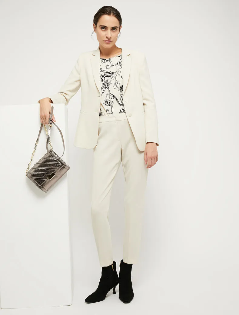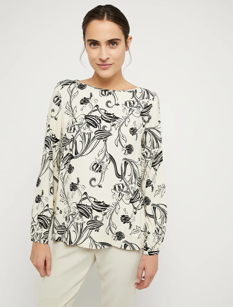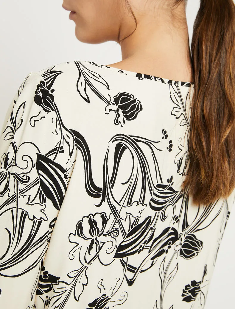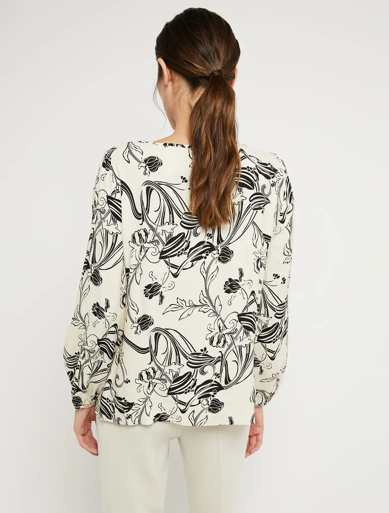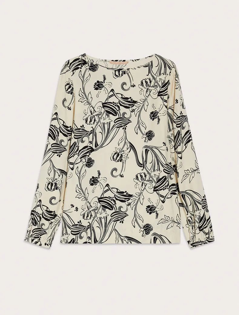 • Stampata a motivi floreali d’ispirazione Art Nouveau, la blusa in crêpe sablé saprà addolcire anche il look più rigoroso. Design lineare con taglio diritto e morbido, scollo a barchetta e polsini sottili.