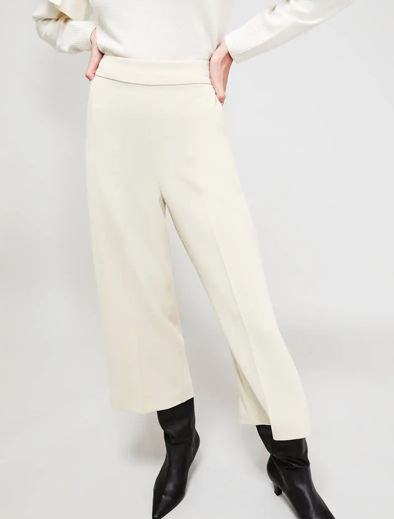 - pantaloni ampi in tessuto fluido. Linee diritte con lunghezza alla caviglia, vita regolare, zip invisibile al fianco.