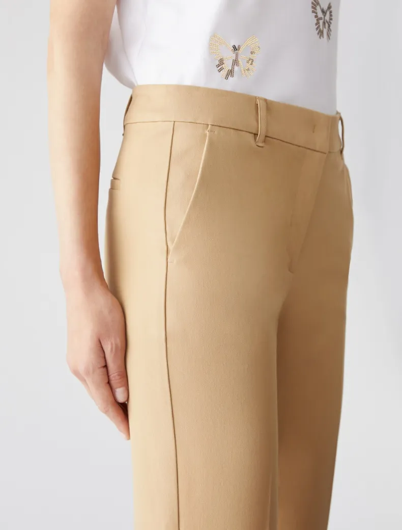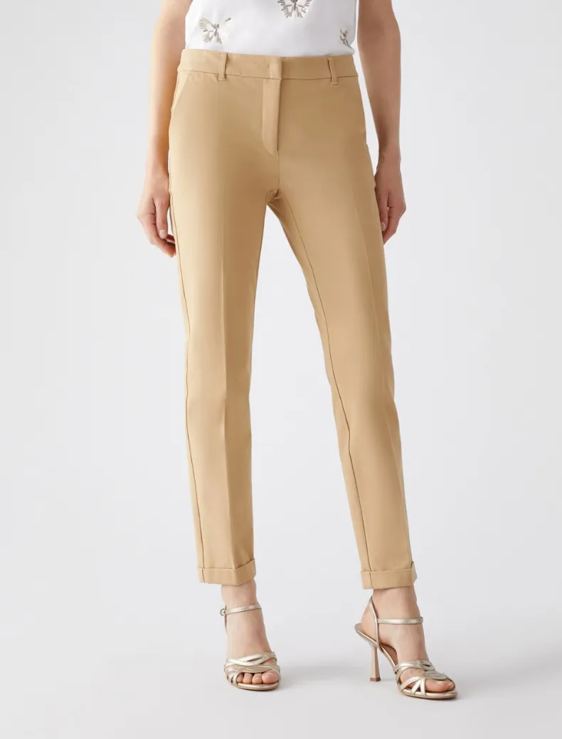 - Pantaloni regular fit in cotone e viscosa bi-stretch. Vita con passanti, gamba affusolata con piega stirata e risvolto al fondo. Tasche alla francese davanti e a filo dietro, chiusura nascosta con zip. Un classico su cui poter sempre contare.
