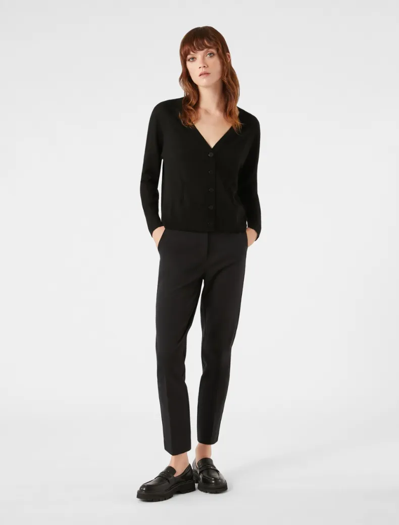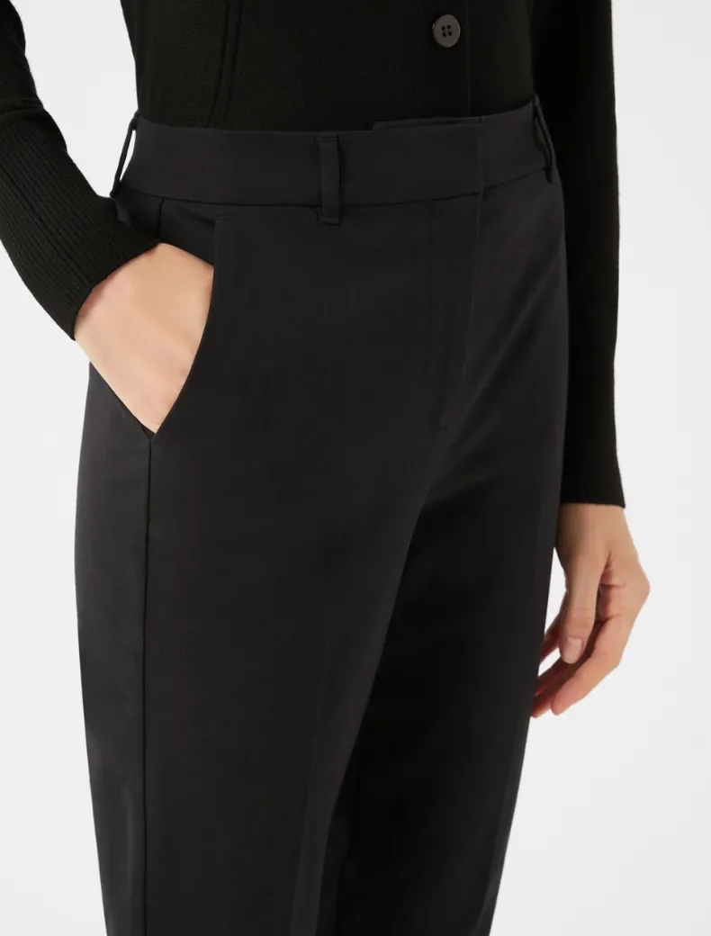 - Pantaloni dal taglio slim sartoriale in twill di cotone e viscosa bi-stretch. Hanno linee leggermente affusolate e vita regolare. Piega stirata, chiusura nascosta con zip. Essenziali e versatili, per abbinamenti multipli.