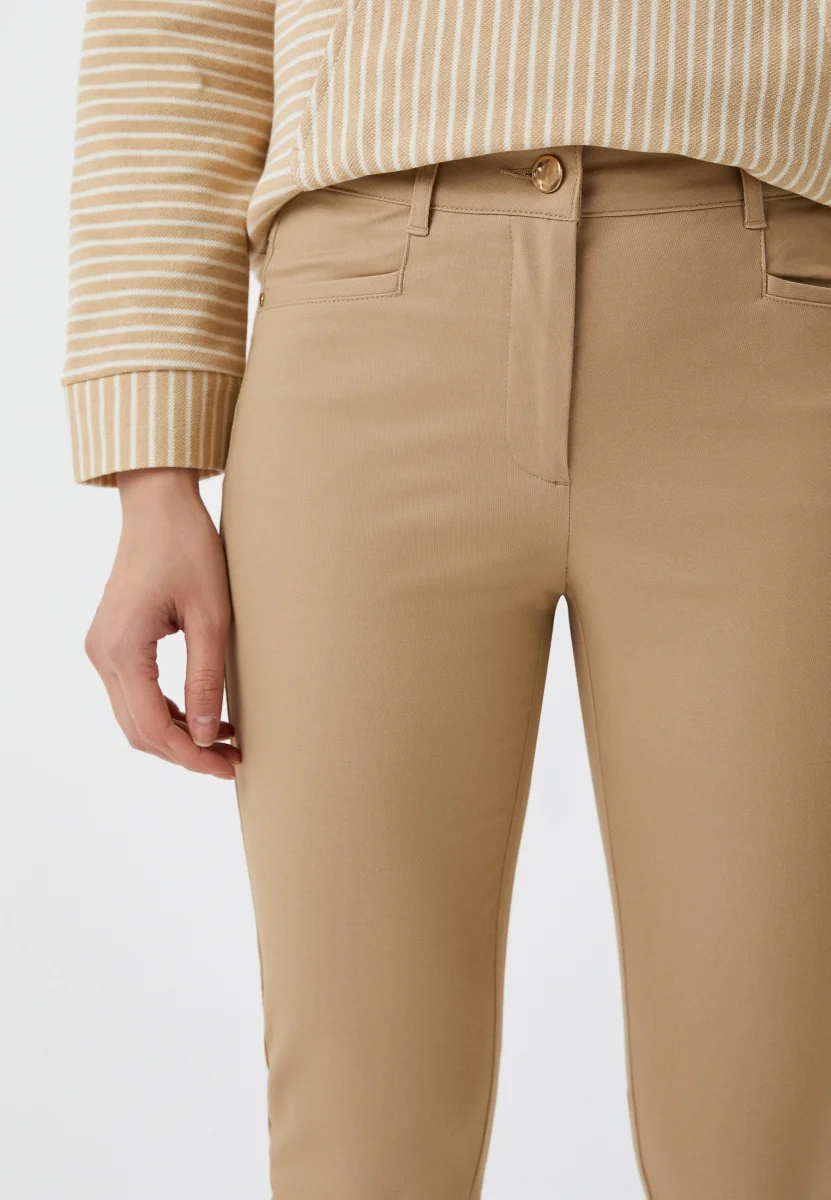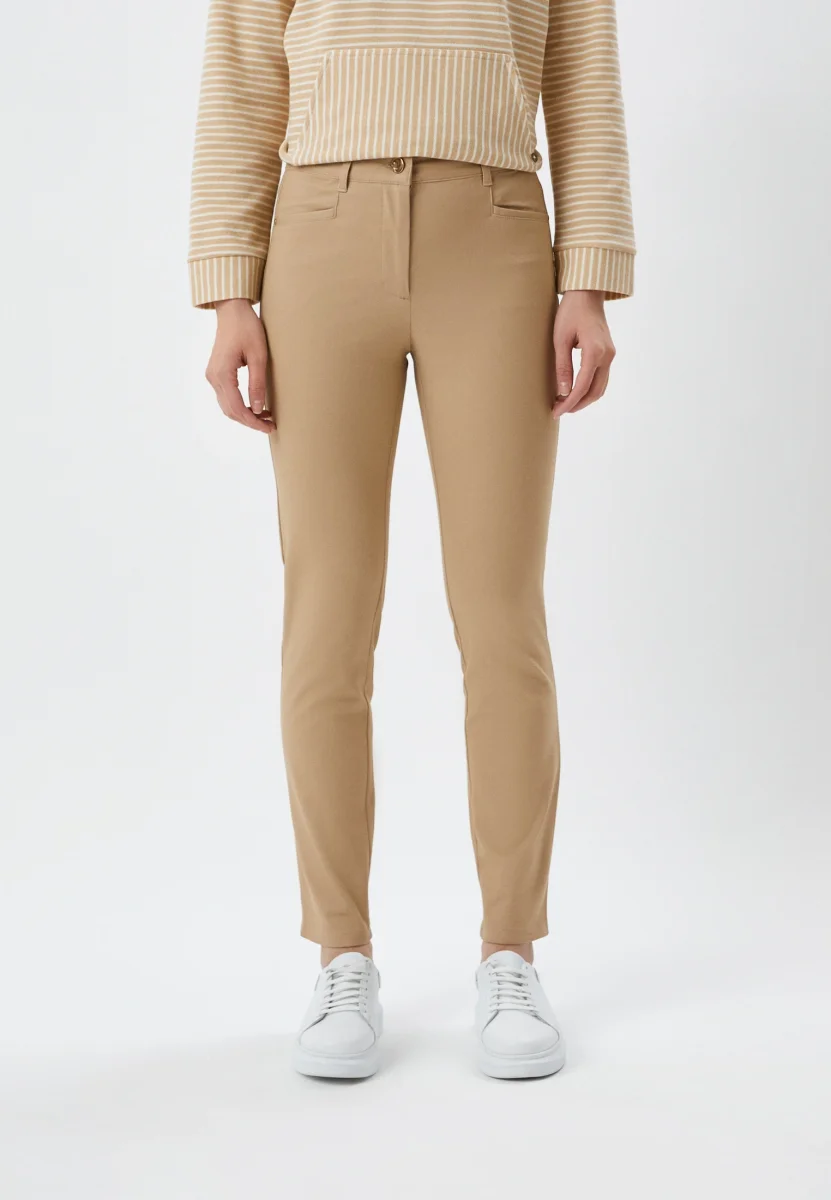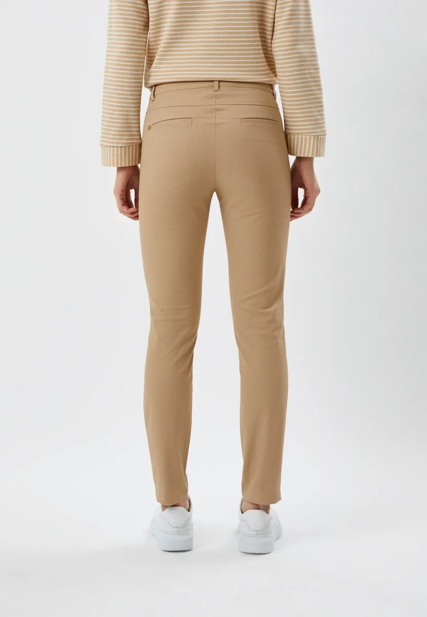 - Pantaloni in cotone stretch dalla linea classica e regolare, chiusi con bottone e zip nascosta. Tasche alla francese davanti e a filetto dietro. Piega stirata.