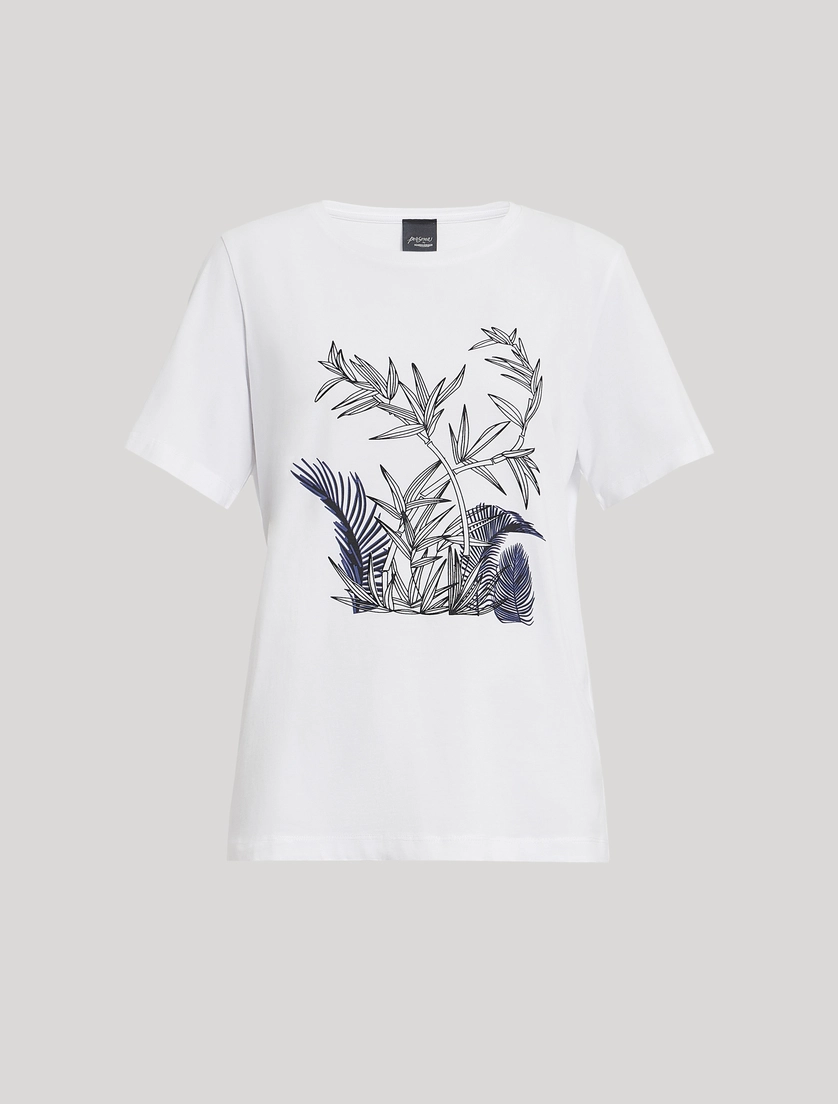 - T-shirt in morbido puro cotone rifinita con stampa piazzata sul davanti. Scollo rotondo, maniche corte, linea dritta per un fit essenziale. Da avere in guardaroba per creare diversi match di stile. Il capo fa parte della collezione Persona by Marina Rinaldi.