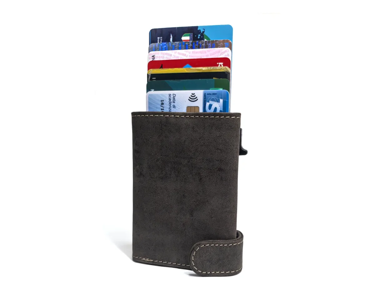 Ecco un portacarte di credito automatico in pelle robustissima, sicuro e pratico allo stesso tempo. Il nostro Portacarte uomo Automatico in Pelle modello Hunter è la soluzione perfetta per te. Realizzato in morbida pelle di bufalo con un design raffinato, questo portacarte è l’accessorio ideale per l’uomo o la donna moderni che desiderano tenere al sicuro le proprie carte e i propri contanti in ogni momento della giornata.