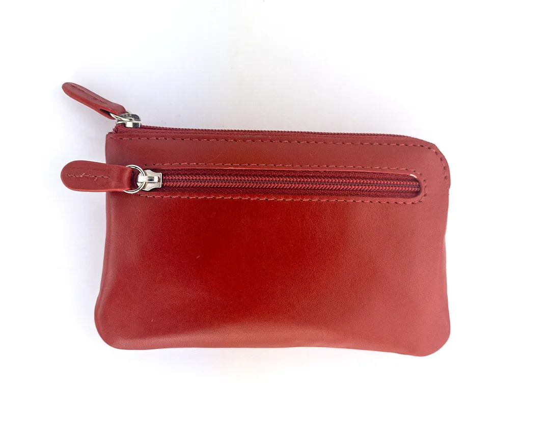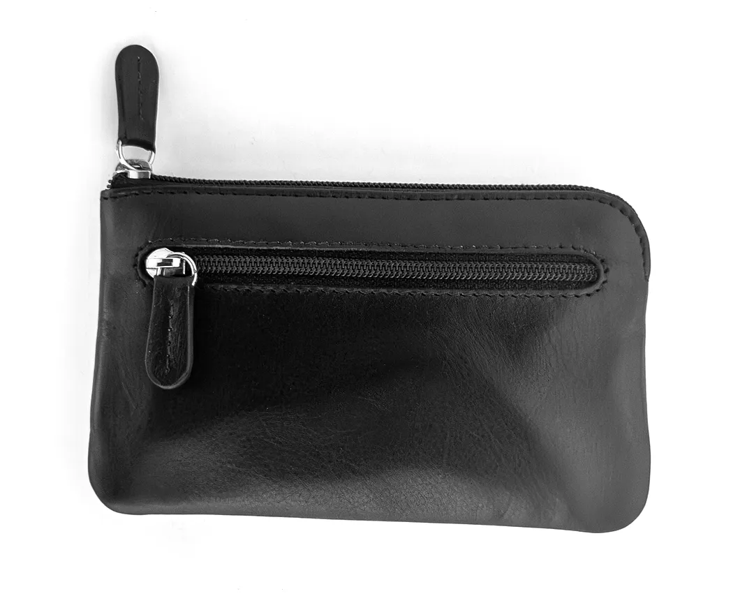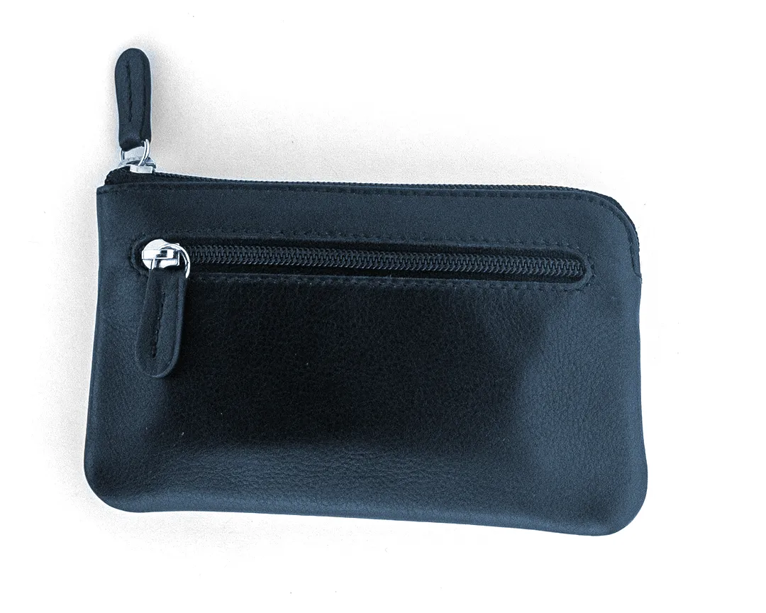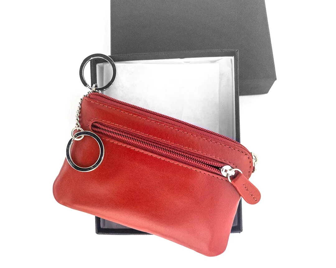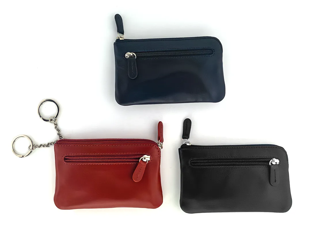 Portachiavi con ganci a bustina in vera pelle con 2 zip