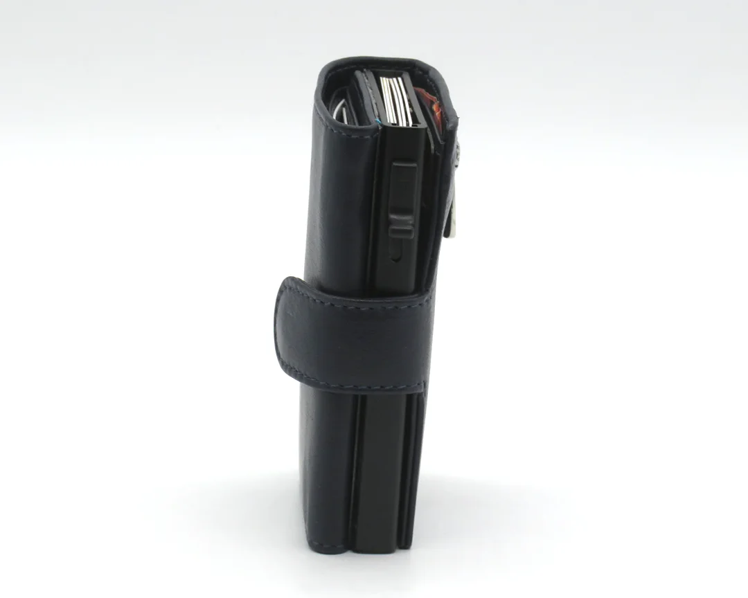 - Sistema pop-up: Il comodo sistema pop-up ti permette di estrarre le tue carte con un solo gesto rapido e semplice, senza dover aprire completamente il portacarte. Questo rende l’accesso alle tue carte veloce e pratico, ideale per un uso quotidiano.