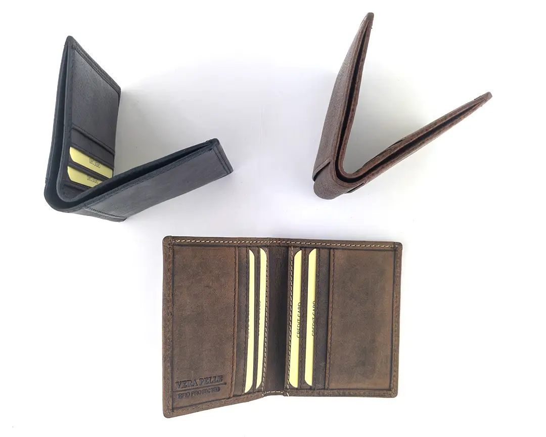 Scopri il perfetto connubio tra classe, stile e materiali di alta qualitร  con il Portafoglio Uomo Compatto in Pelle, un accessorio che unisce tradizione, stile e funzionalitร . Realizzati con vari tipi di pelle lavorate, questo portafoglio non รจ solo un simbolo di eleganza, ma anche un omaggio all’arte della lavorazione della pelle.