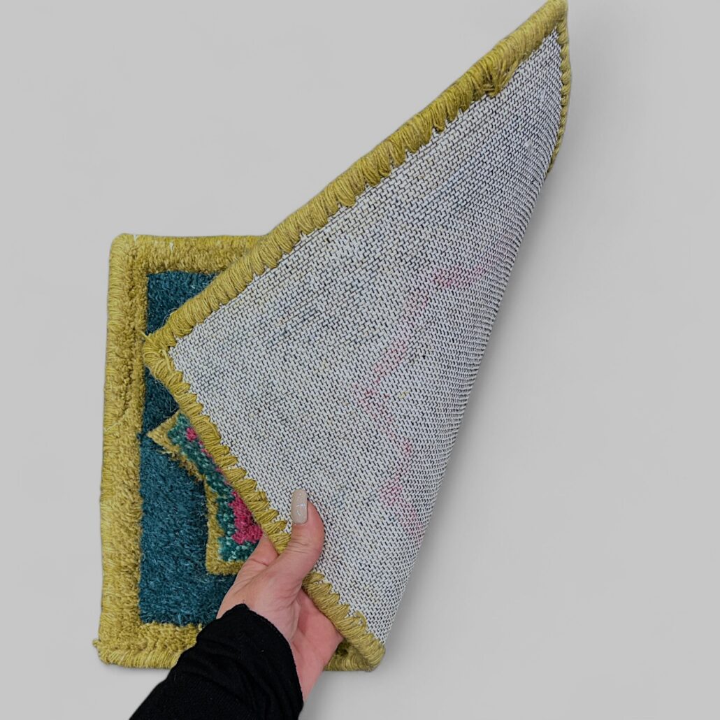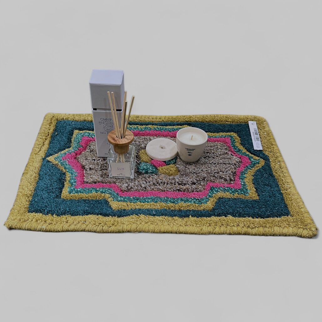 Tappetino compatto realizzato con materiali naturali. In lana e cotone in un formato pratico e una combinazione di colori e motivi assortiti. Ogni pezzo è diverso. Perfetto per piccoli spazi o superfici da proteggere, è un oggetto funzionale. Dimensioni: L 46 CM – H 31 CM