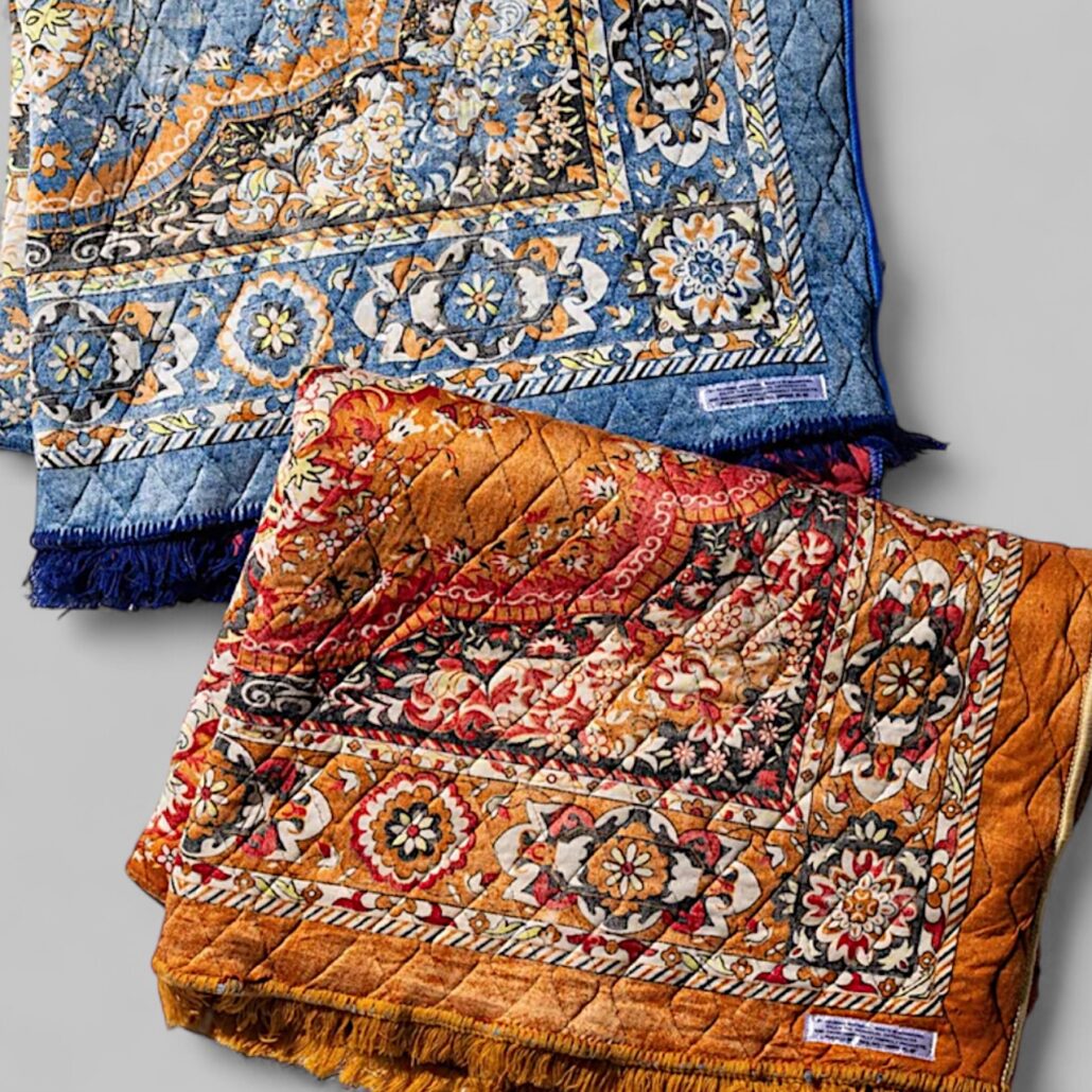 Tappeto in stile indiano, morbido e leggero realizzato con materiale di recupero. Misure: 140 x 210 cm – Misto cotone.