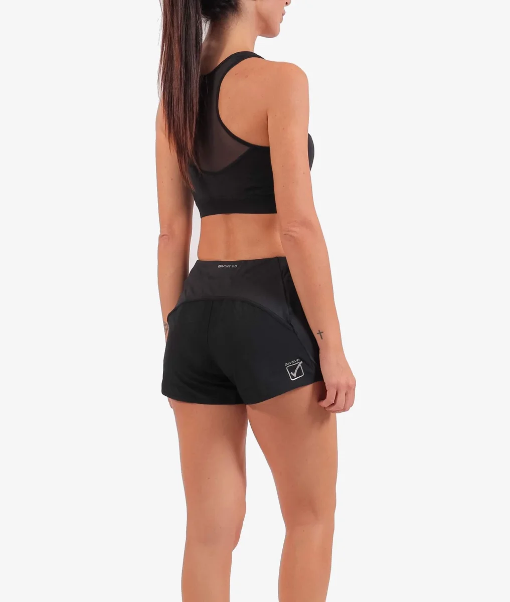 90% Poliestere 10% Elastane Logo catarifrangente Inserti in mesh Lo short da donna per il fitness è un capo d’abbigliamento essenziale per qualsiasi donna che ama allenarsi. Progettato per essere confortevole, traspirante e in grado di offrire un’ottima libertà di movimento.