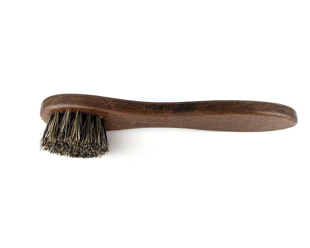 Le setole in crine di cavallo, disponibili in versione chiara o scura, sono perfette per lucidare e pulire le scarpe in pelle senza danneggiarle. Una spazzolina per scarpe pensata per trattare anche i materiali più delicati.