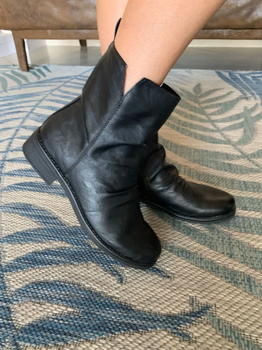 Stivaletto in ecopelle arricciata. Suola in gomma,chiusura con zip laterale Altezza tacco 3,5 cm, altezza totale 19 cm
