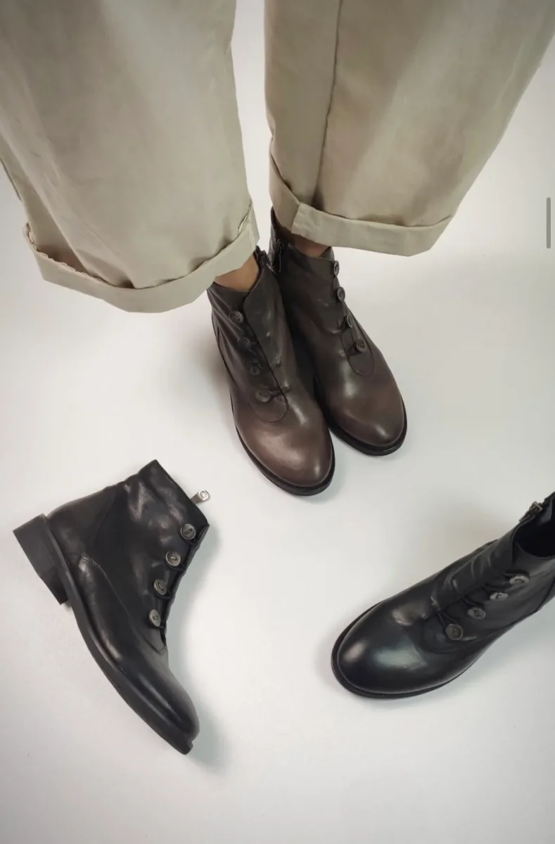 Stivaletto in vera pelle con bottoni