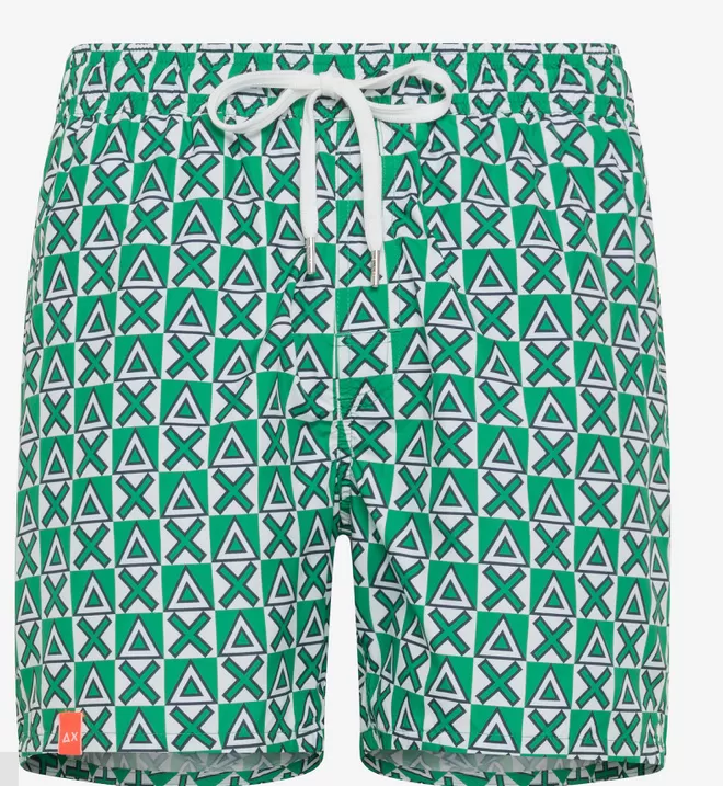 Sun68 Swim Pant Micrologo All Over Bianco/Verde Prato