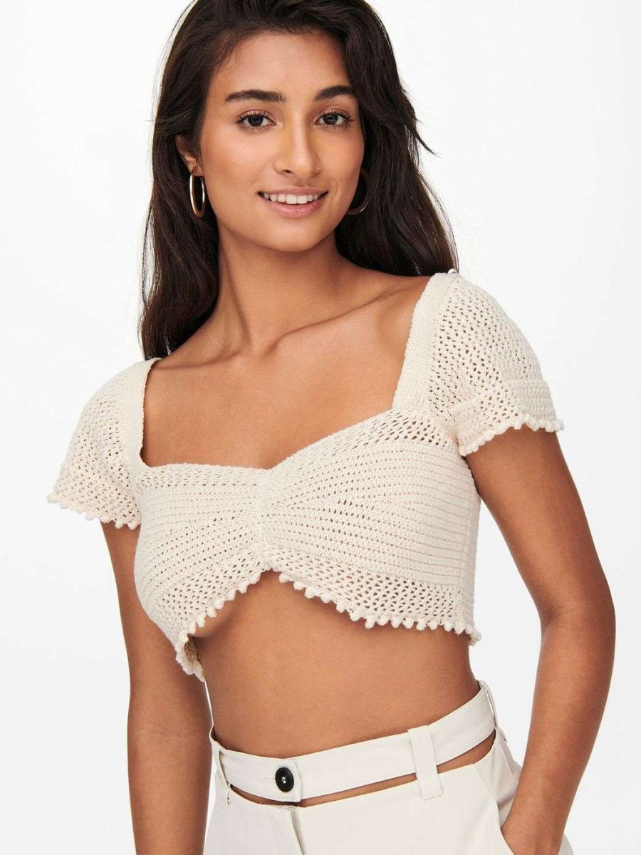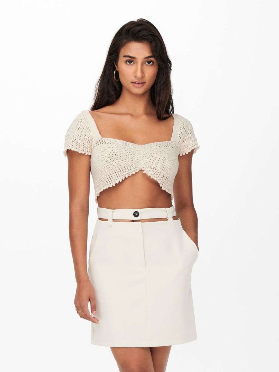 Top Intrecciato uncinetto monocolore manica corta Only modello ONLSUMMER CROPPED. Collezione Primavera/Estate 2022.