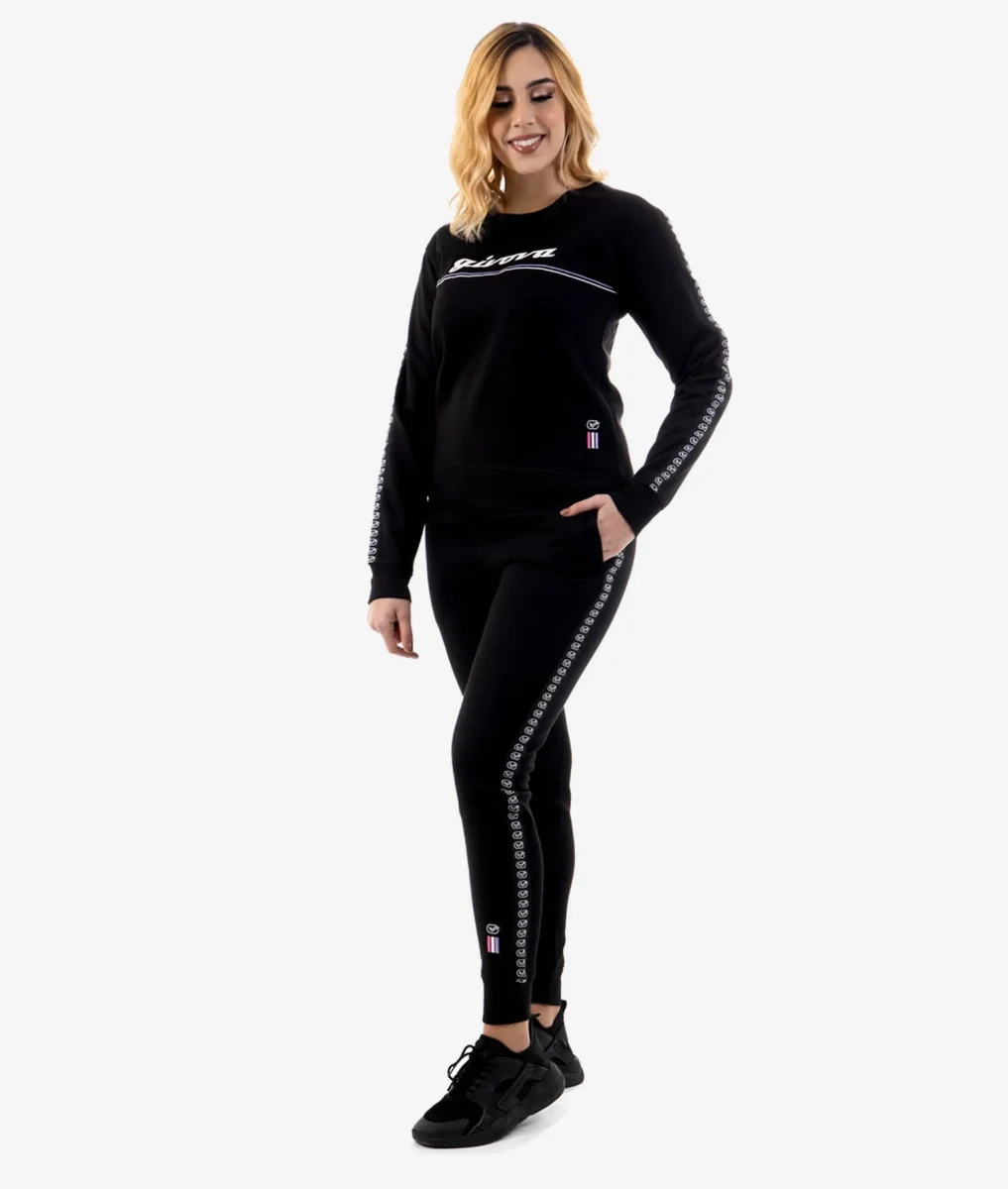ALLENAMENTO, BIKE, CALCIO, CORSA, DANZA, FITNESS, FOOTING, FREE TIME, PADEL, PALESTRA, PASSEGGIO, RAPPRESENTANZA, RUNNING, TEMPO LIBERO, TRAINING, DONNA, YOGA Tuta in Felpa 15% Cotone – 85% Poliestere Giacca Girocollo: Loghi ricamati; Polsini in costina; Fondo Giacca in costina; Pantaloni: Loghi ricamati; Tasche laterali; Fondo pantalone in costina; Tessuto in felpa adatto ai climi più freddi.