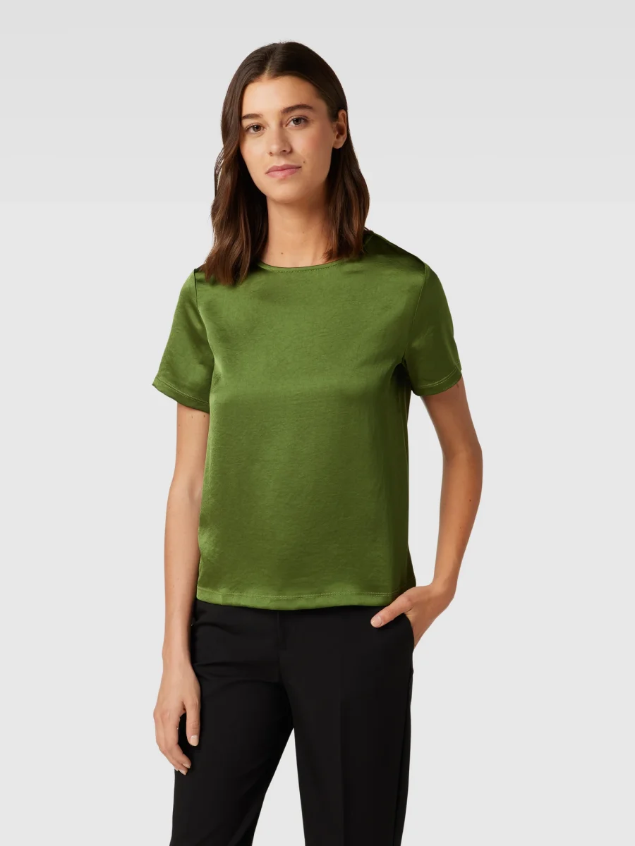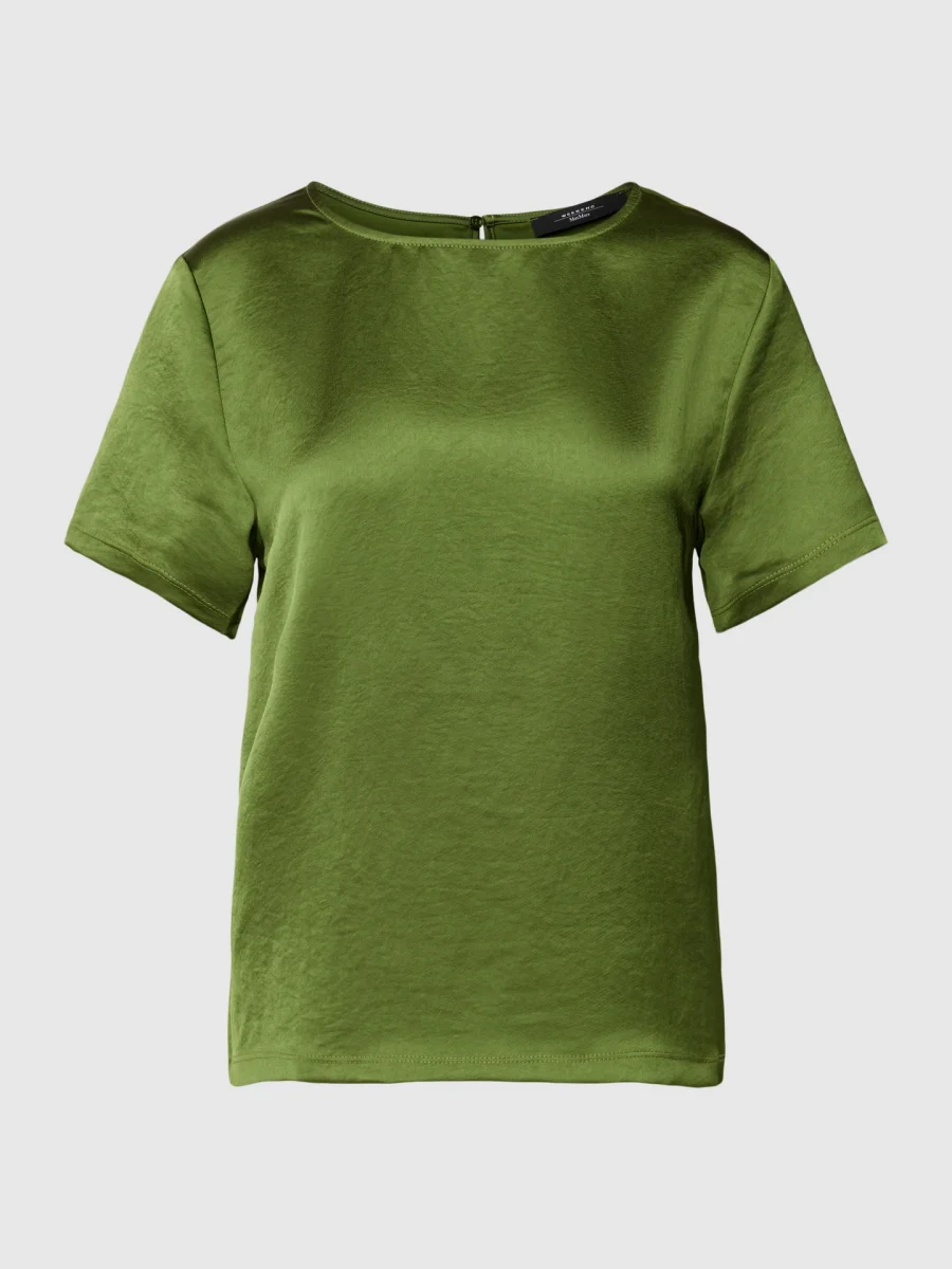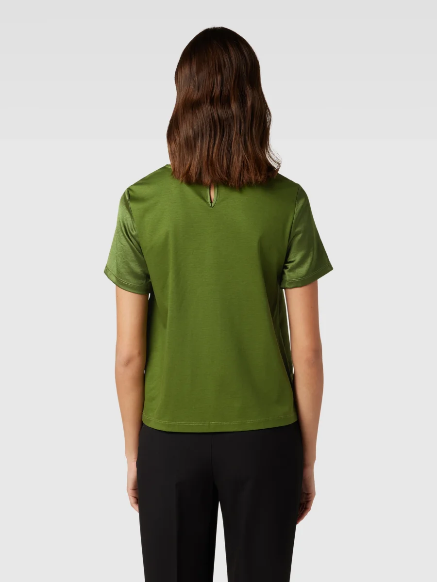 - Blusa dalla vestibilità fluida realizzata in raso tecnico lavato con inserto in morbido jersey di cotone e modal sul retro. Modello dalla linea dritta con scollo a giro, maniche corte e chiusura con motivo a goccia sul retro.