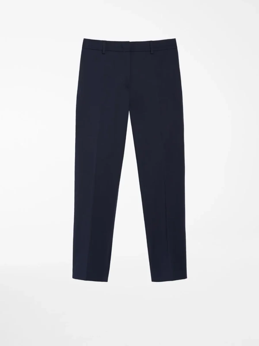 - Pantaloni slim in gabardina di cotone stretch con piega stirata al centro e tasche a filetto sul retro. Chiusura con zip nascosta e gancio sul davanti. Linea dritta.